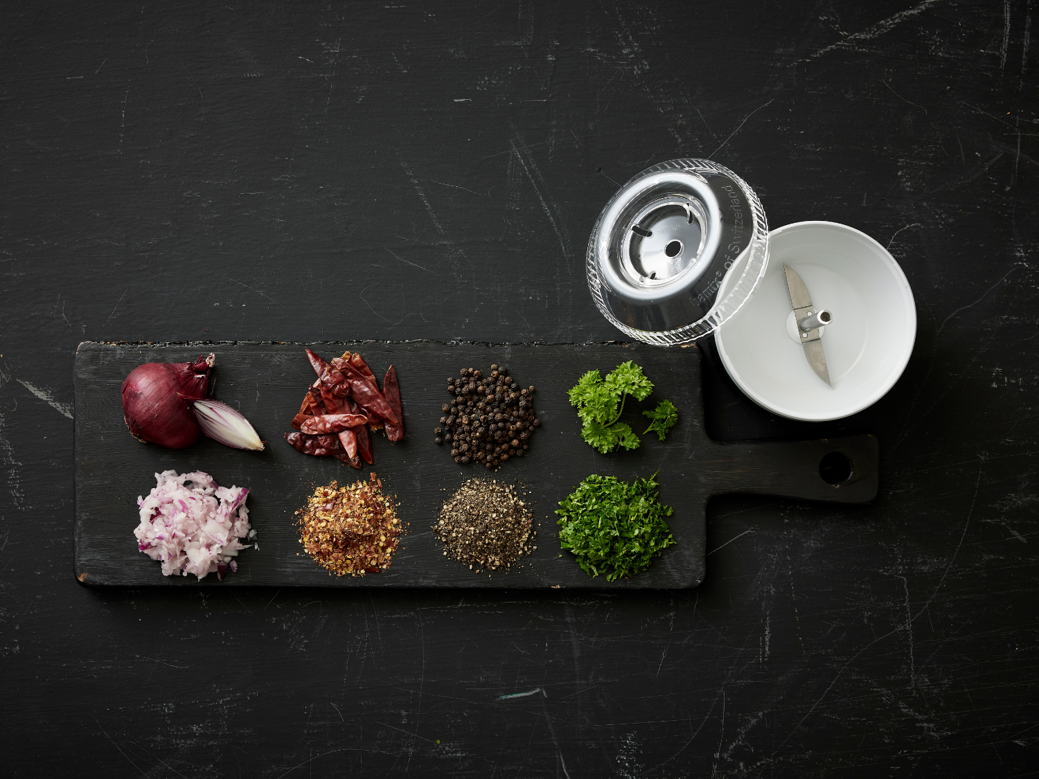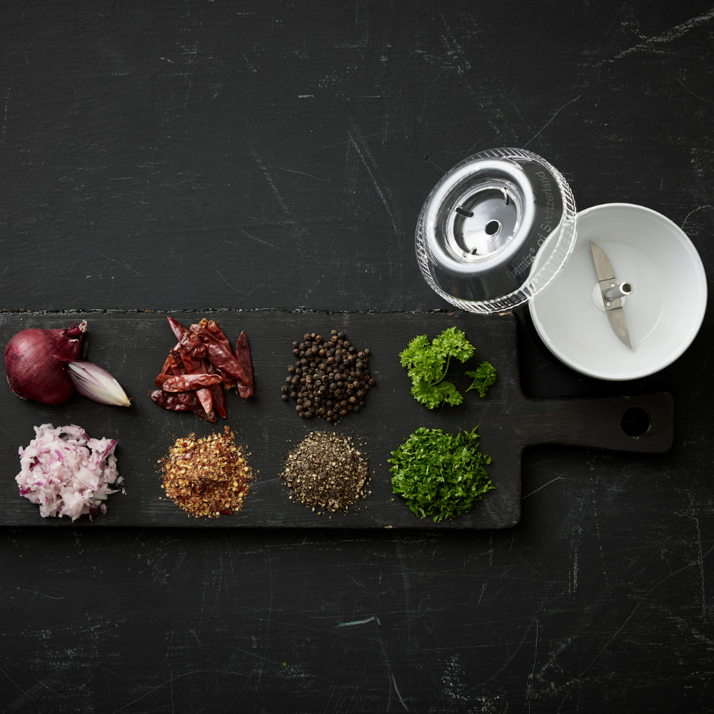 The Bamix Processor is ideal for grinding, chopping, and mixing small quantities of both dry and wet ingredients. It's perfect for herbs, spices, nuts, and even coffee beans.