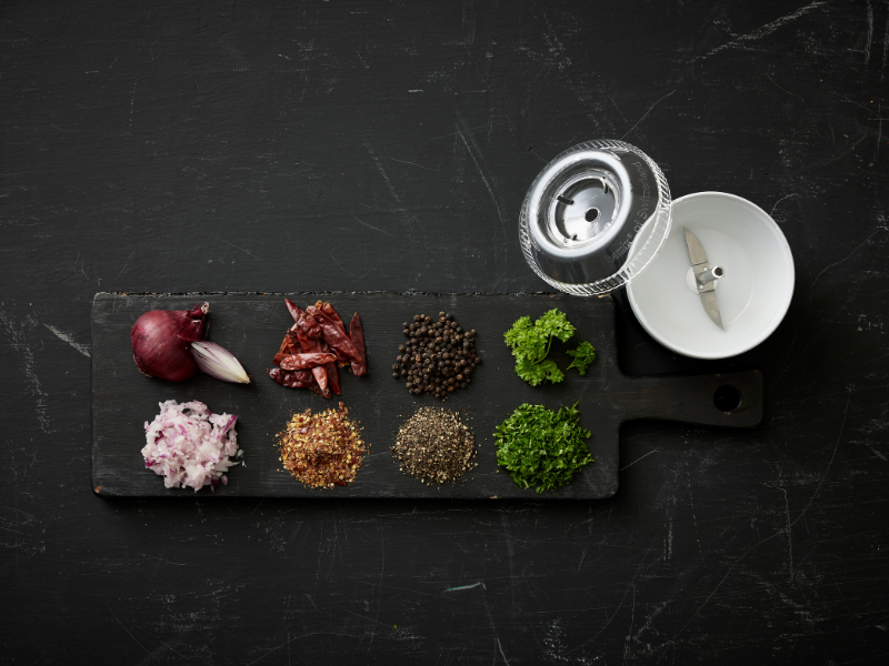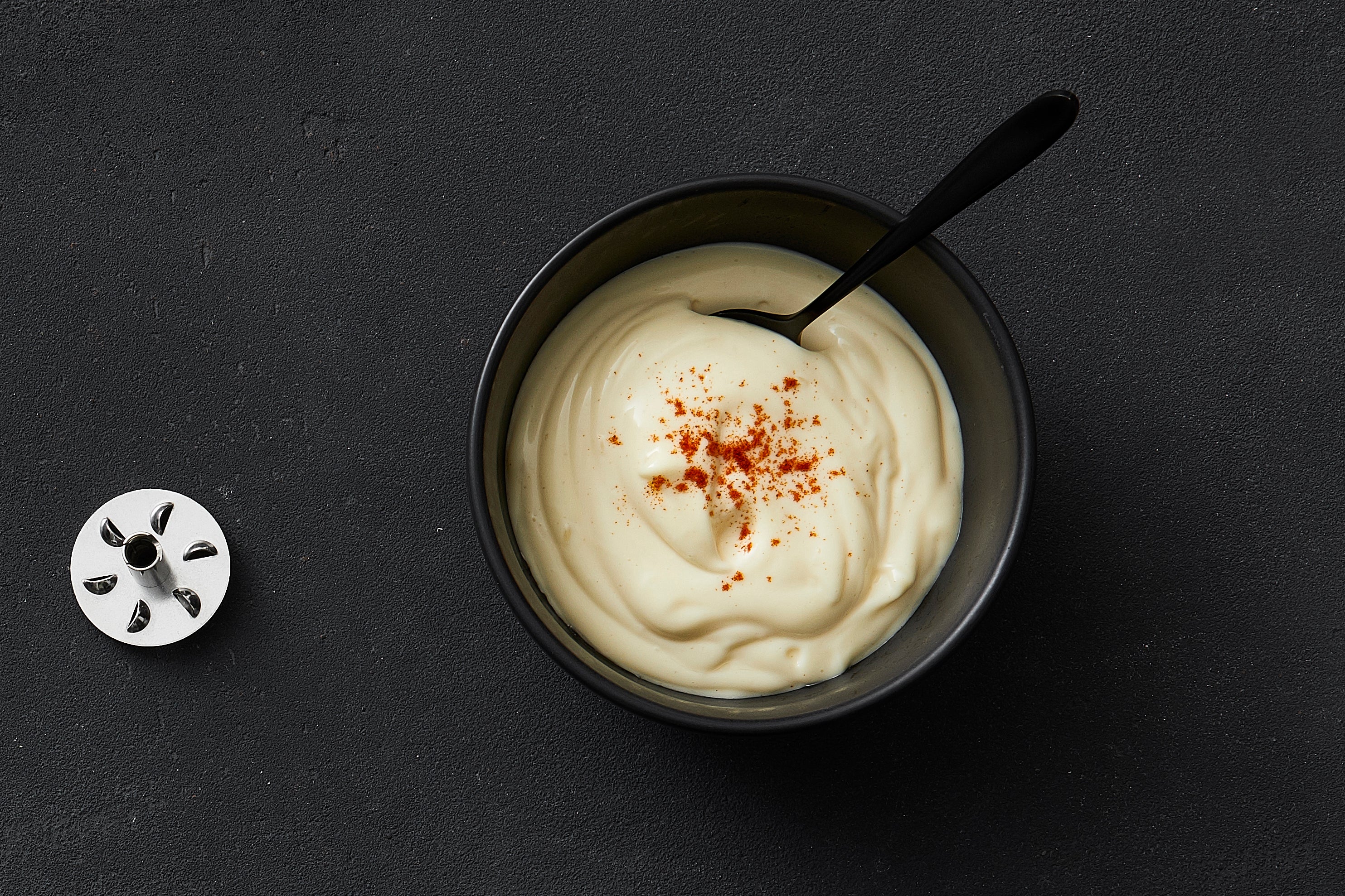 Immerse the bamix® at an angle, switch it on, and stir slowly.